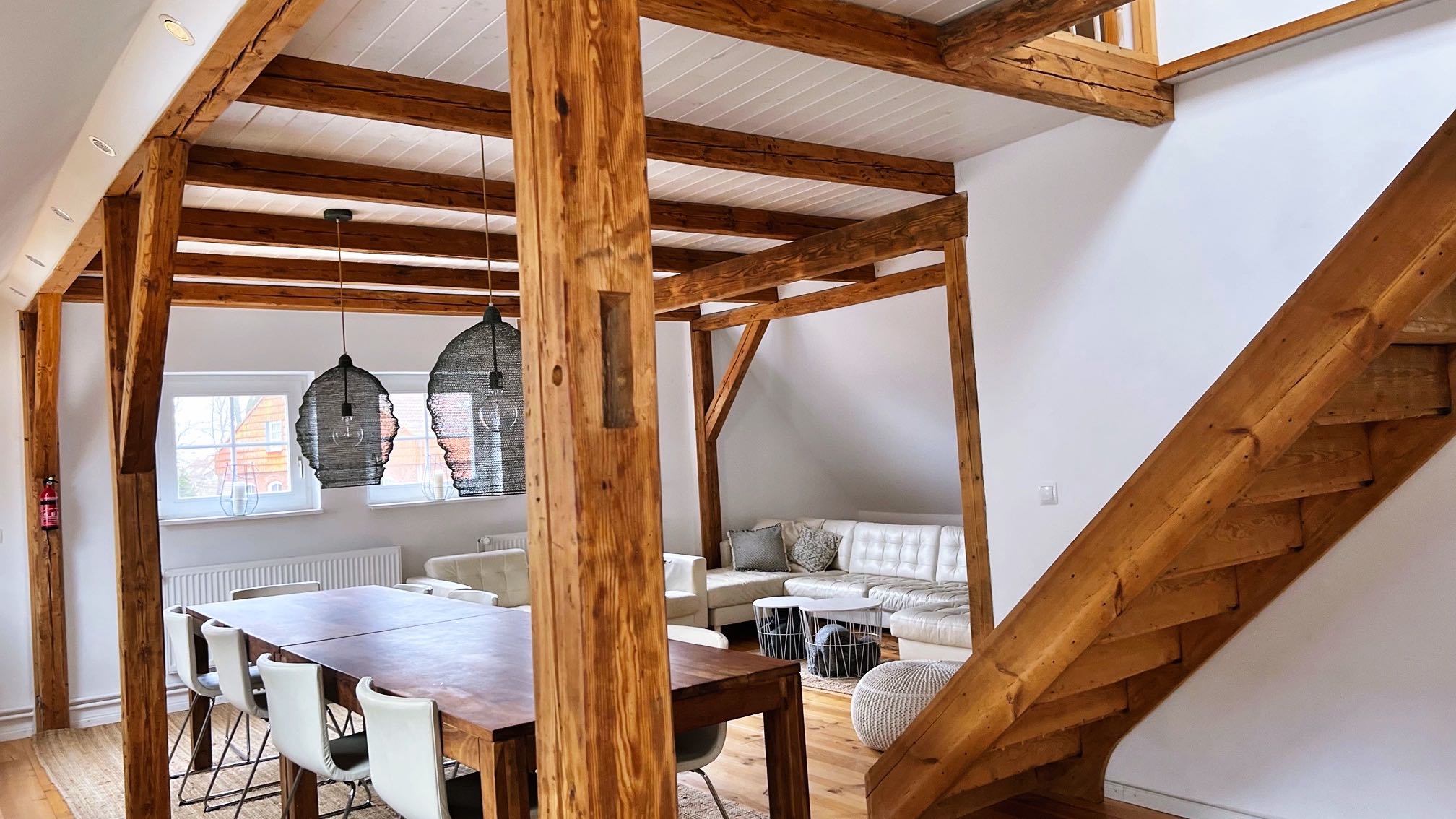 Wichtiger Hinweis: Aufgrund des historischen Charakters des Hauses entsprechen die Treppen und Deckenhöhen im Dachgeschoss nicht den heutigen Normen. Der Treppenaufgang verfügt über kein Geländer.