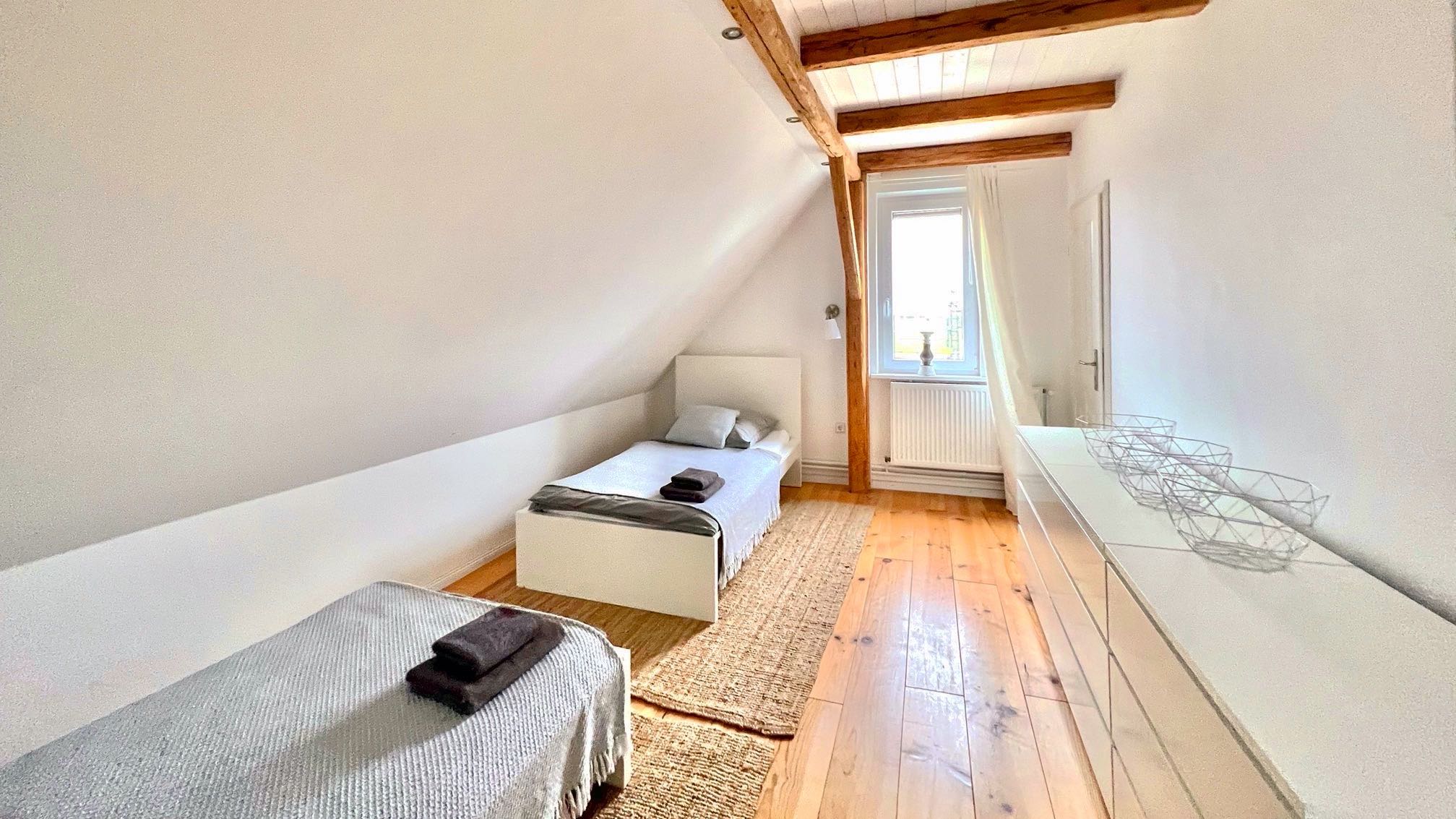 Schlafzimmer unten: Zwei Einzelbetten (90×200)