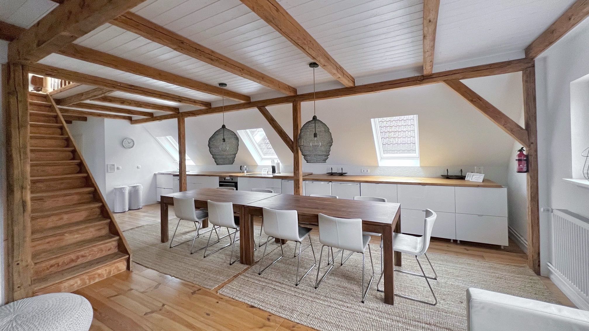 Die hochwertige Edelstahlküche mit separater Speisekammer lädt zum gemeinsamen Kochen ein, und der offene Wohn- und Essbereich bietet den idealen Rahmen für entspannte Stunden.