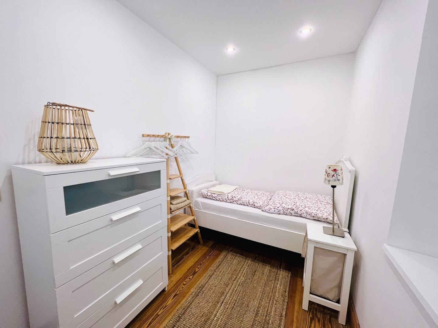 Schlafzimmer unten: Doppelbett (160×200) und Babybett