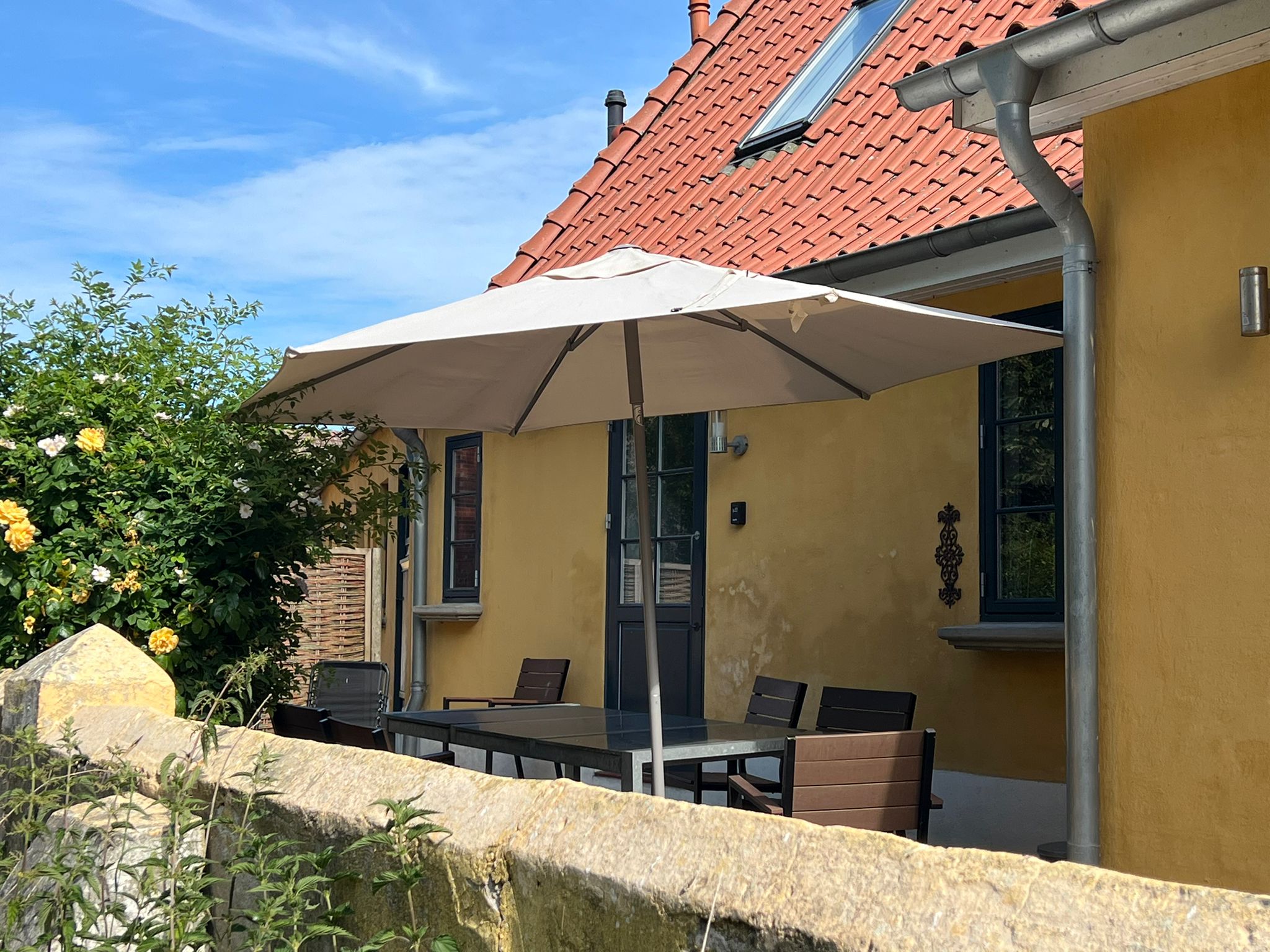 Das Gebäudeensemble ist umfriedet von einer Maueranlage. Die Hofanlage selbst wird von Kies, Granitsteinen und Rosen geprägt.