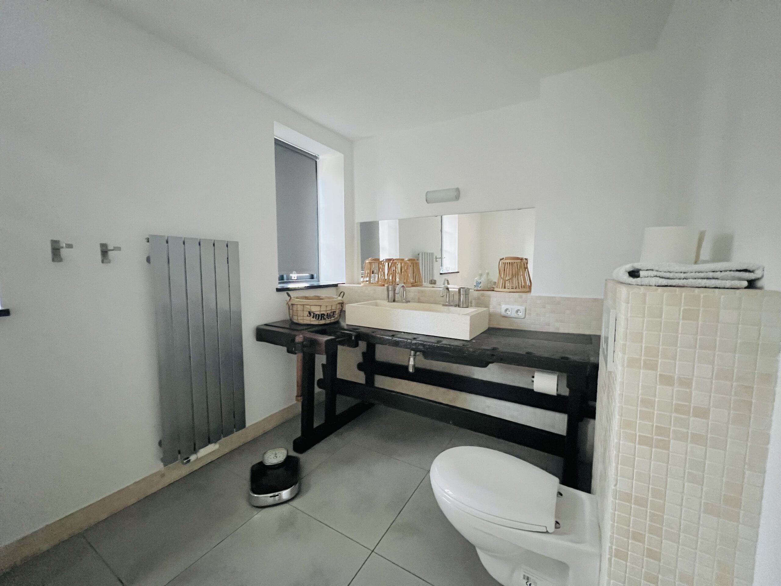 Zudem befindet sich im Erdgeschoss ein Schlafzimmer mit Doppelbett (180x200cm) sowie ein Badezimmer mit einer freistehenden Badewanne aus Travertin, sowie ein weiteres Badezimmer mit einer Walk-In Dusche.