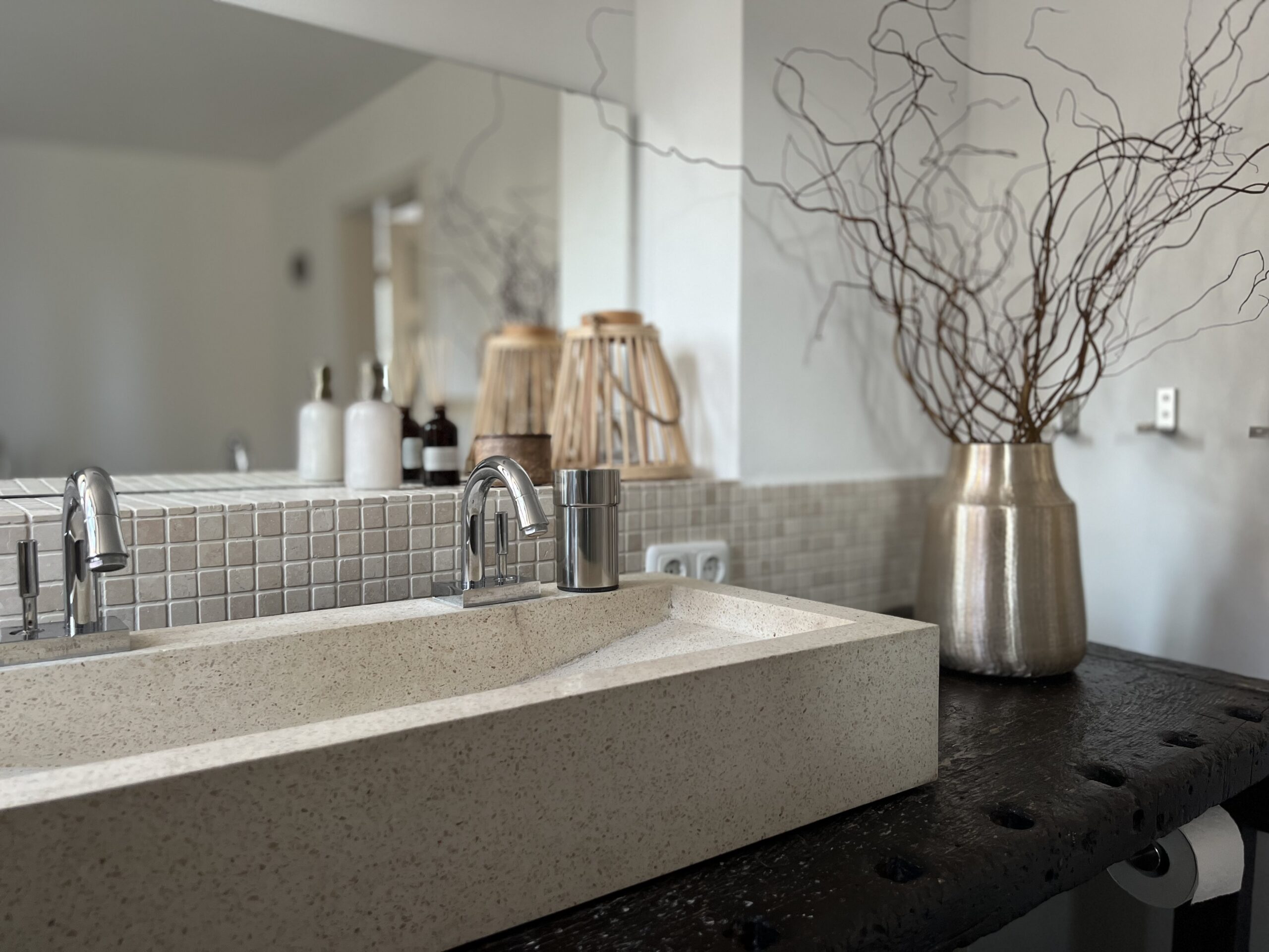 Neben einer offenen 8m langen Küchenzeile, dominieren hochwertige Designbäder aus Marmor und Terrazzo das Interieur und vermitteln ein exklusives Wohngefühl.