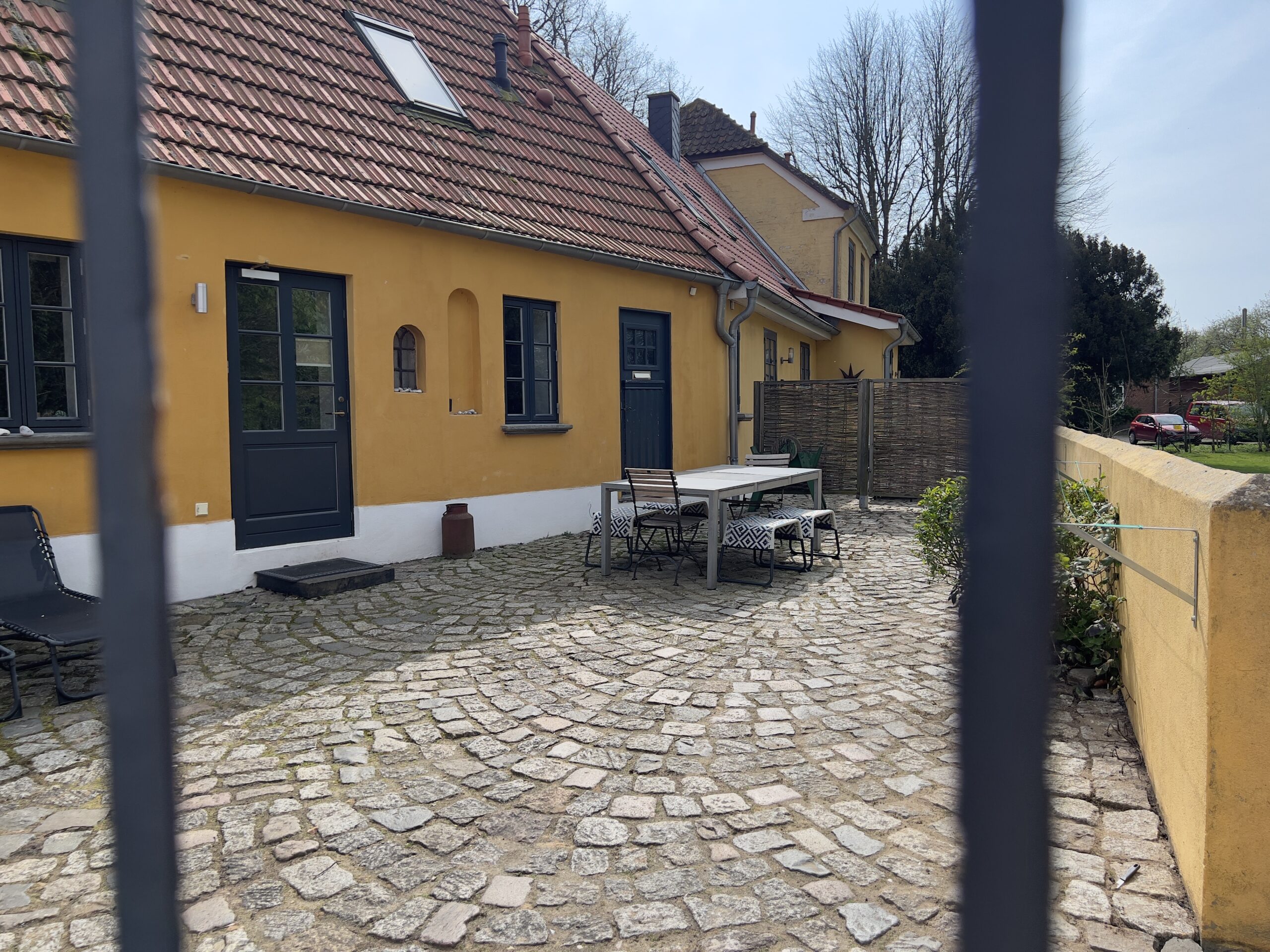Das Gebäudeensemble ist umfriedet von einer Maueranlage. Die Hofanlage selbst wird von Granitsteinen und Rosen geprägt.