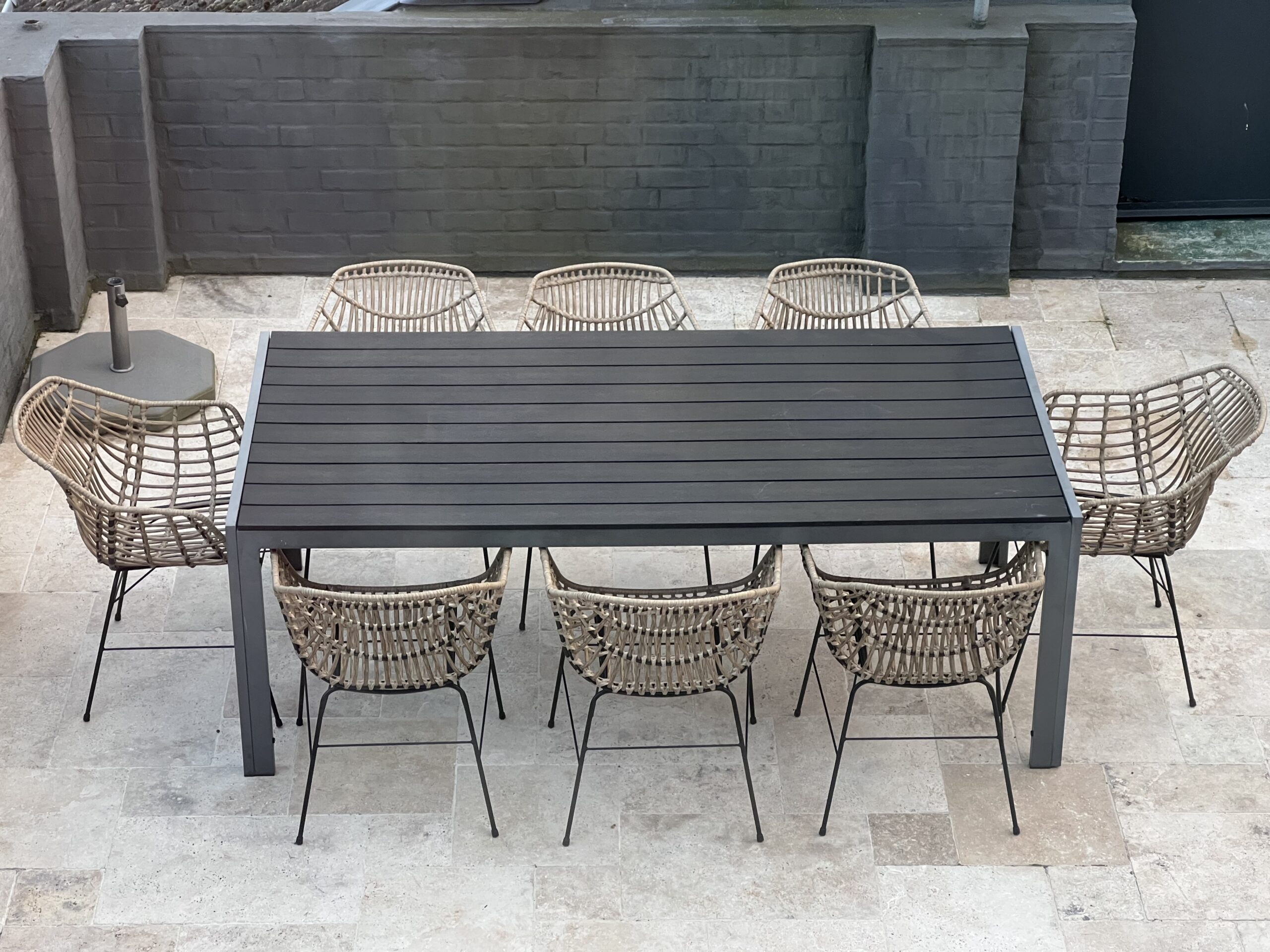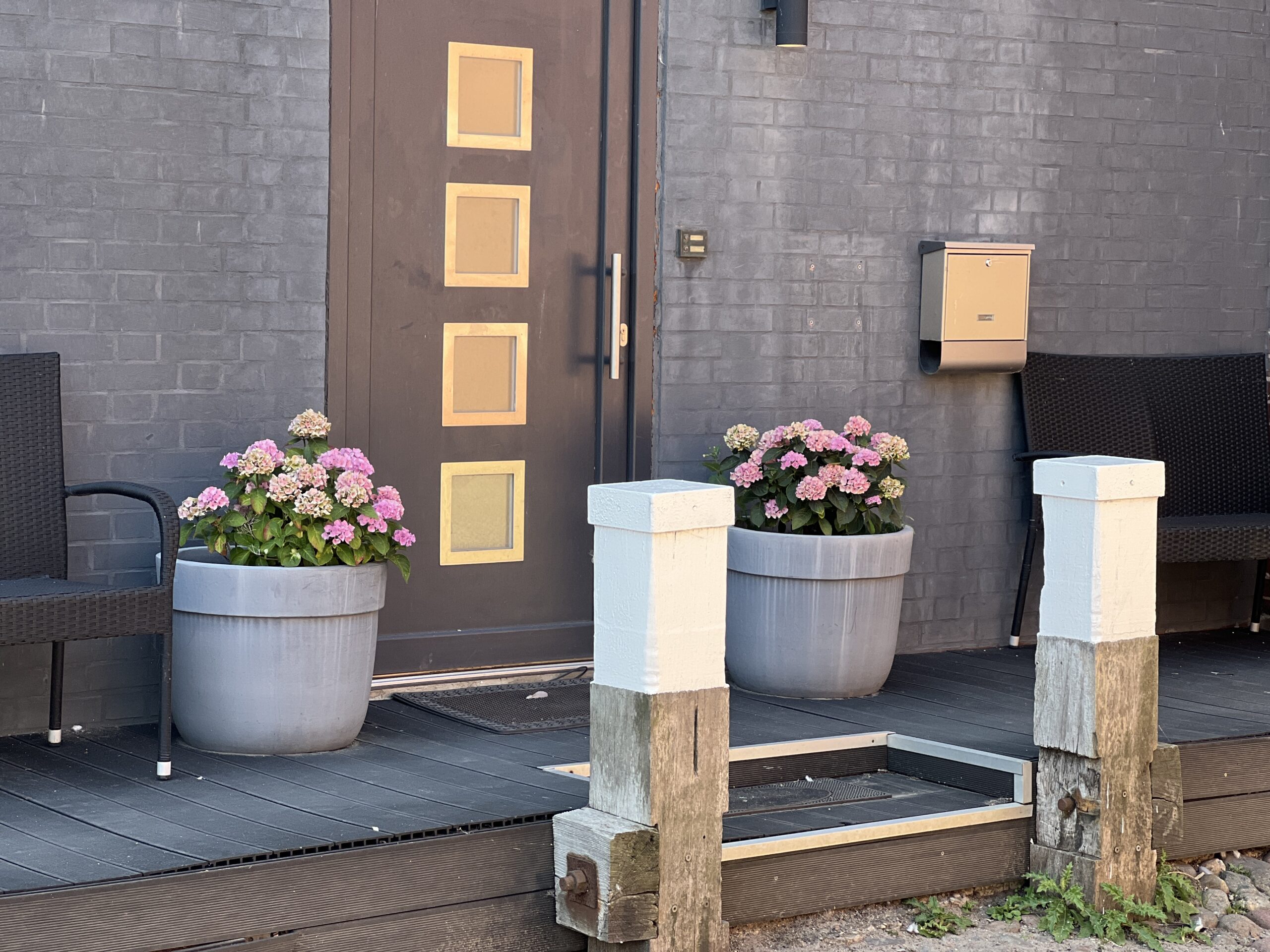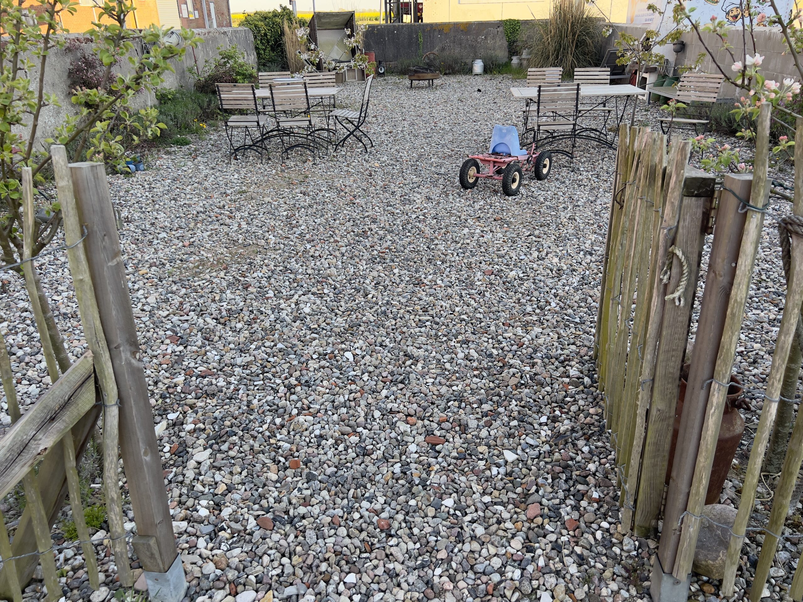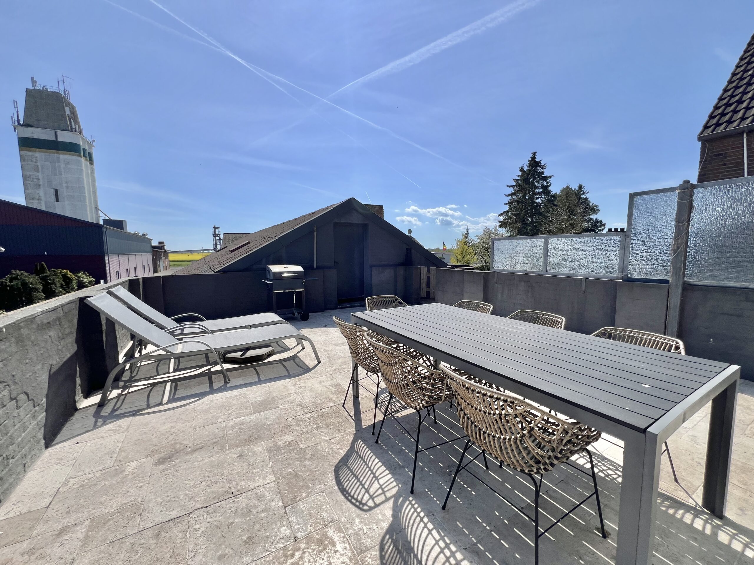 Die Wohnung verfügt über eine Dachterrasse die gemeinsam beiden Ferienwohnungen des Hauses zur Verfügung steht. Die Dachterrasse teilt sich in zwei Bereiche auf, sodass jede Unterkunft ihren eigenen Bereich hat. Jeder Bereich der Dachterrasse verfügt über Sitzmöglichkeiten für bis zu 8 Personen. Zudem ist die Dachterrasse mit jeweils einem Holzkohlengrill und zwei Sonnenliegen ausgestattet.