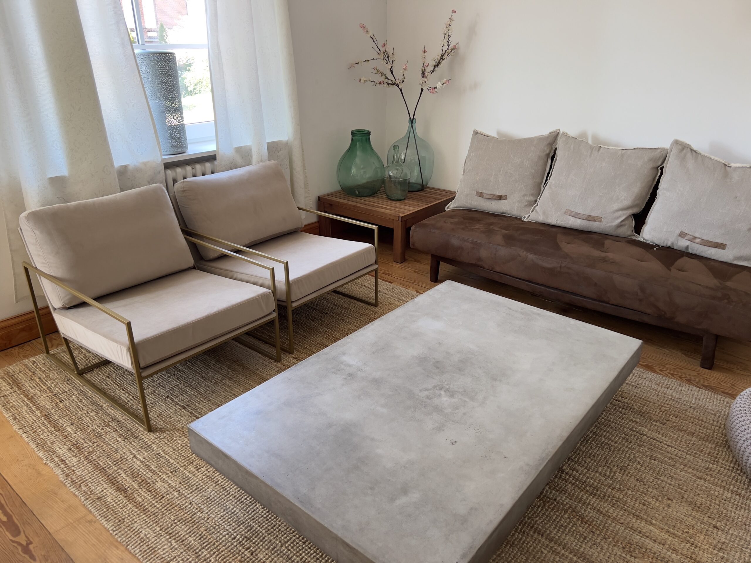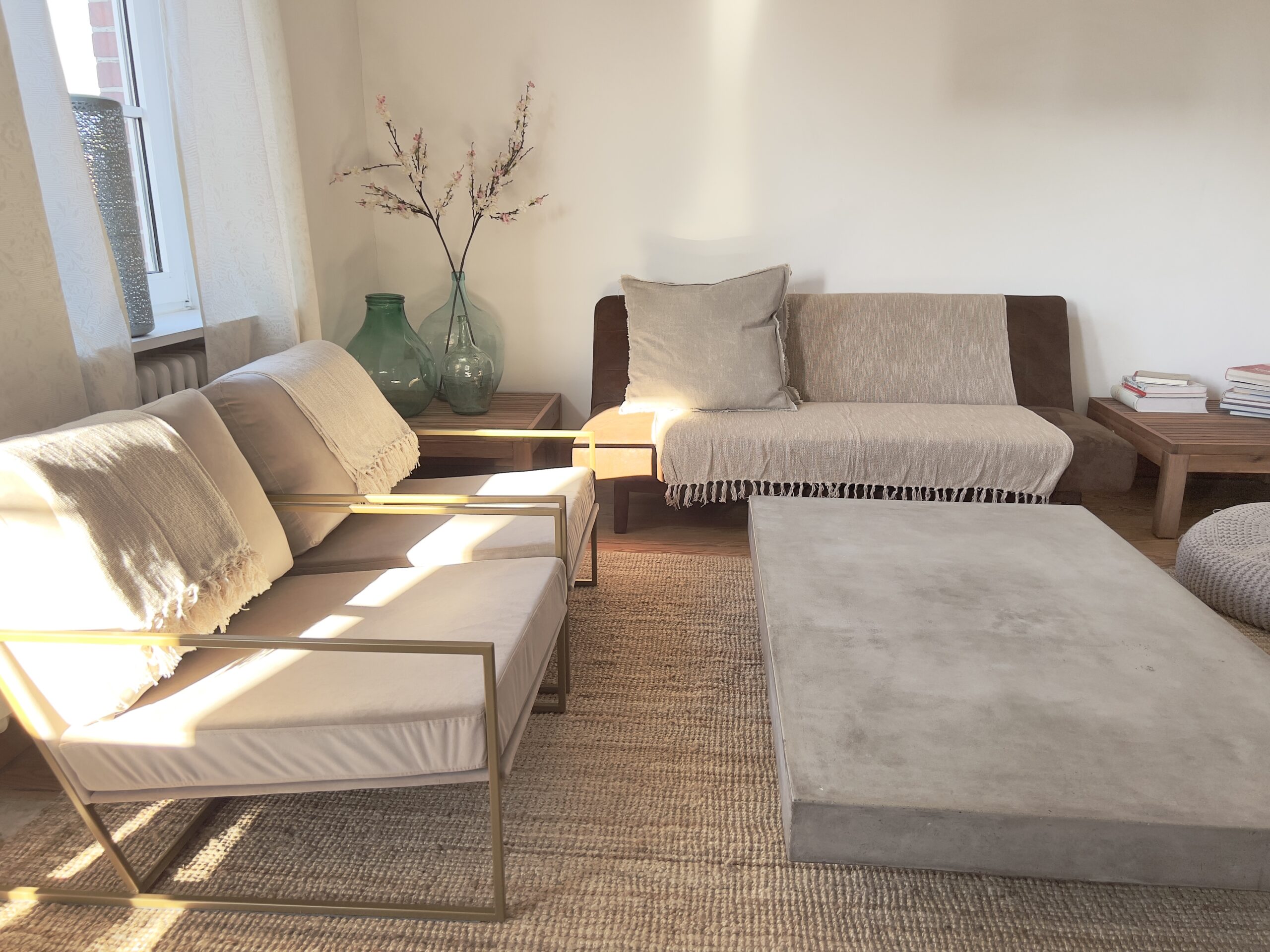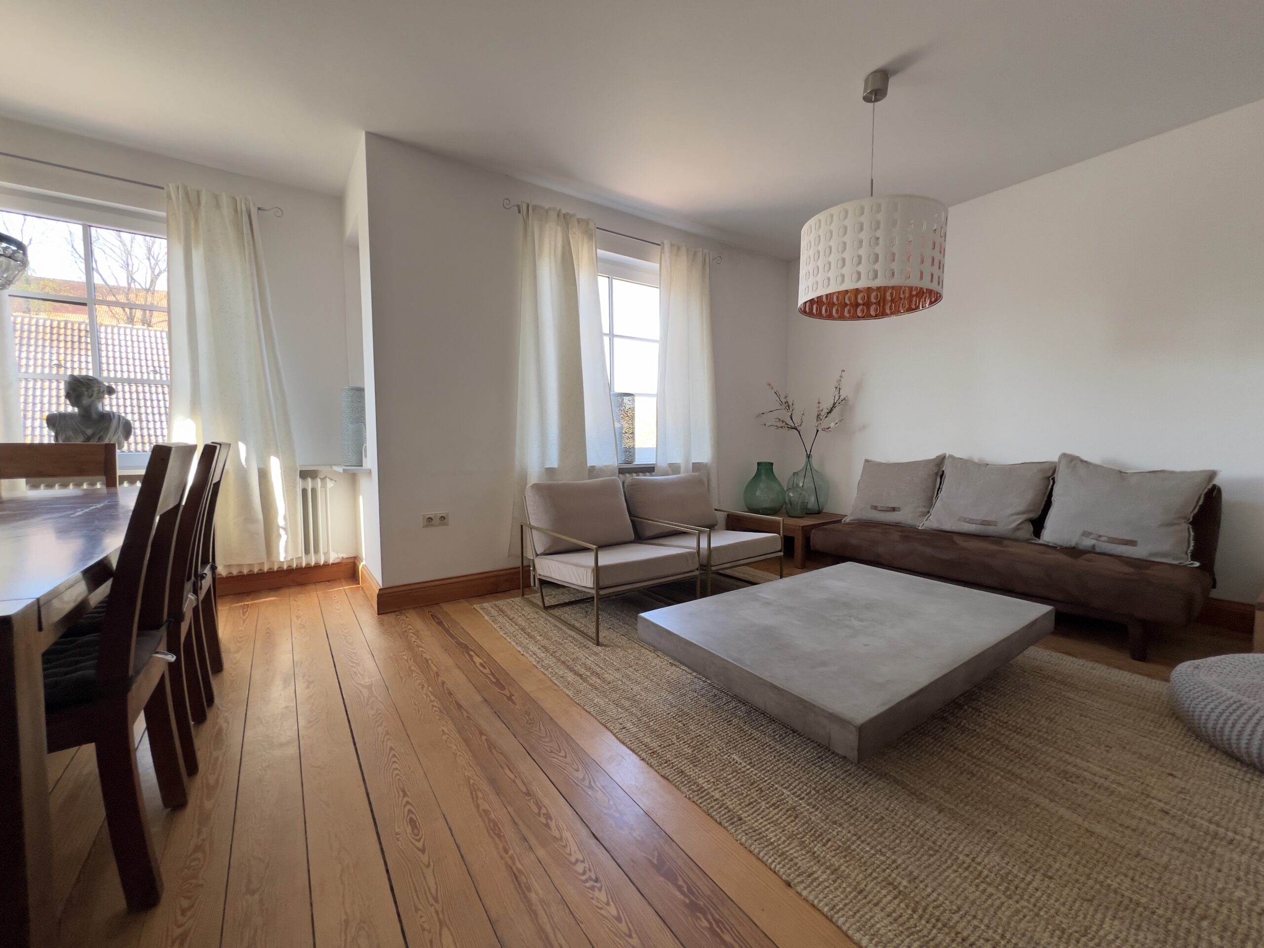 Die Wohnung ist stillvoll und klassisch eingerichtet und wurde 2016 saniert und restauriert – klassische Pitch-Pine Dielen, sowie Travertin und Terrazzoböden prägen das Ambiente der Wohnung.