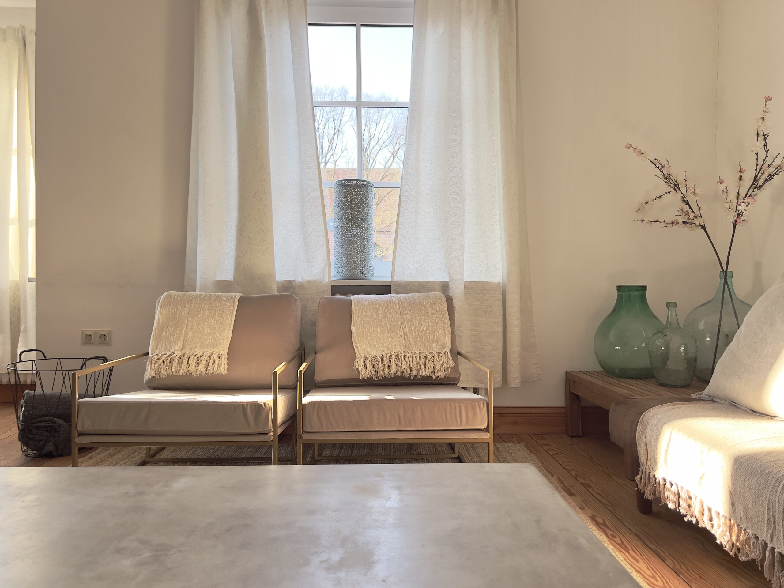 Die Wohnung Bel Etage befindet sich im historischen Amtshaus von Petersdorf im Westen der Insel Fehmarn